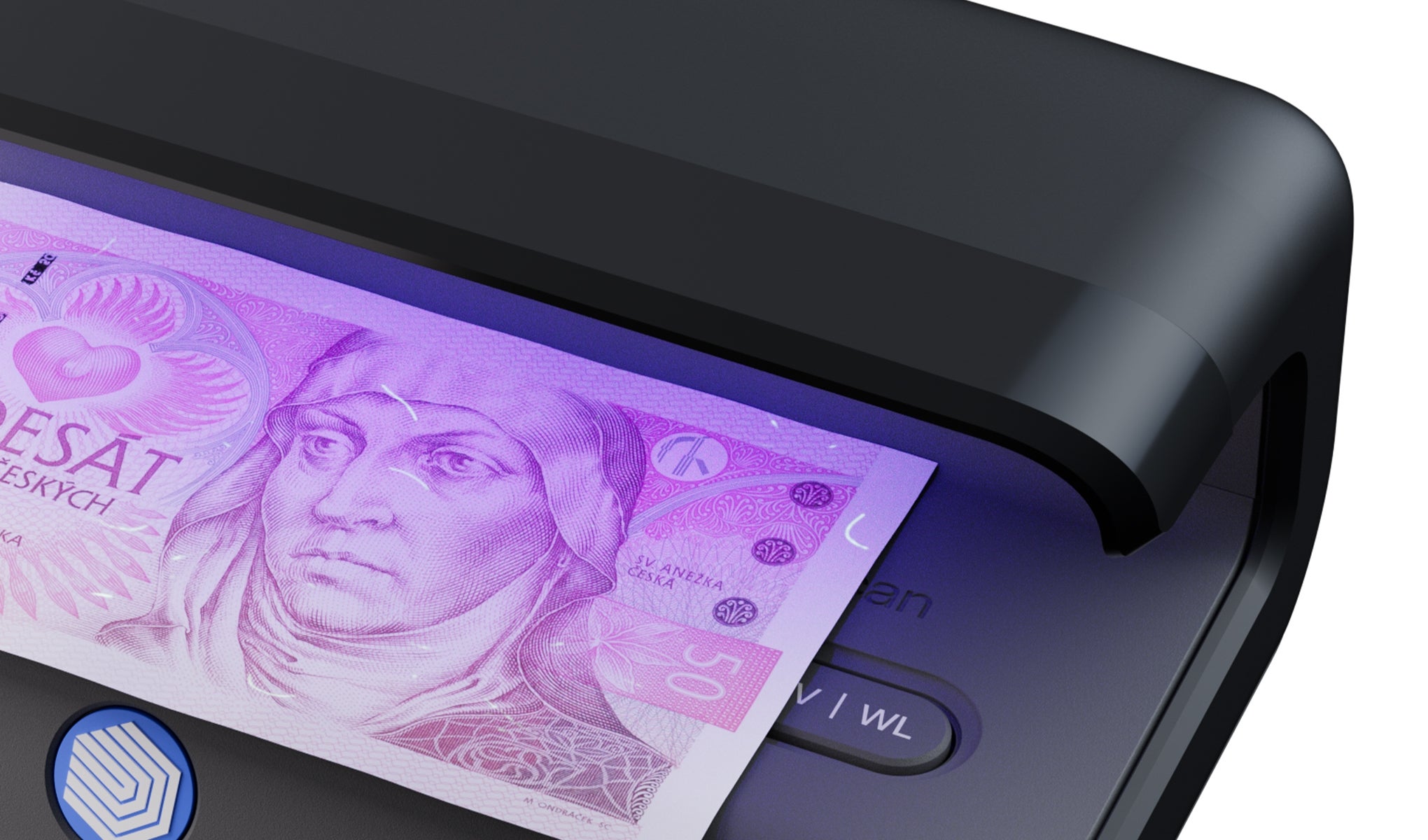 - Detektor padělaných peněz s výkonnou detekcí UV a bílého světla