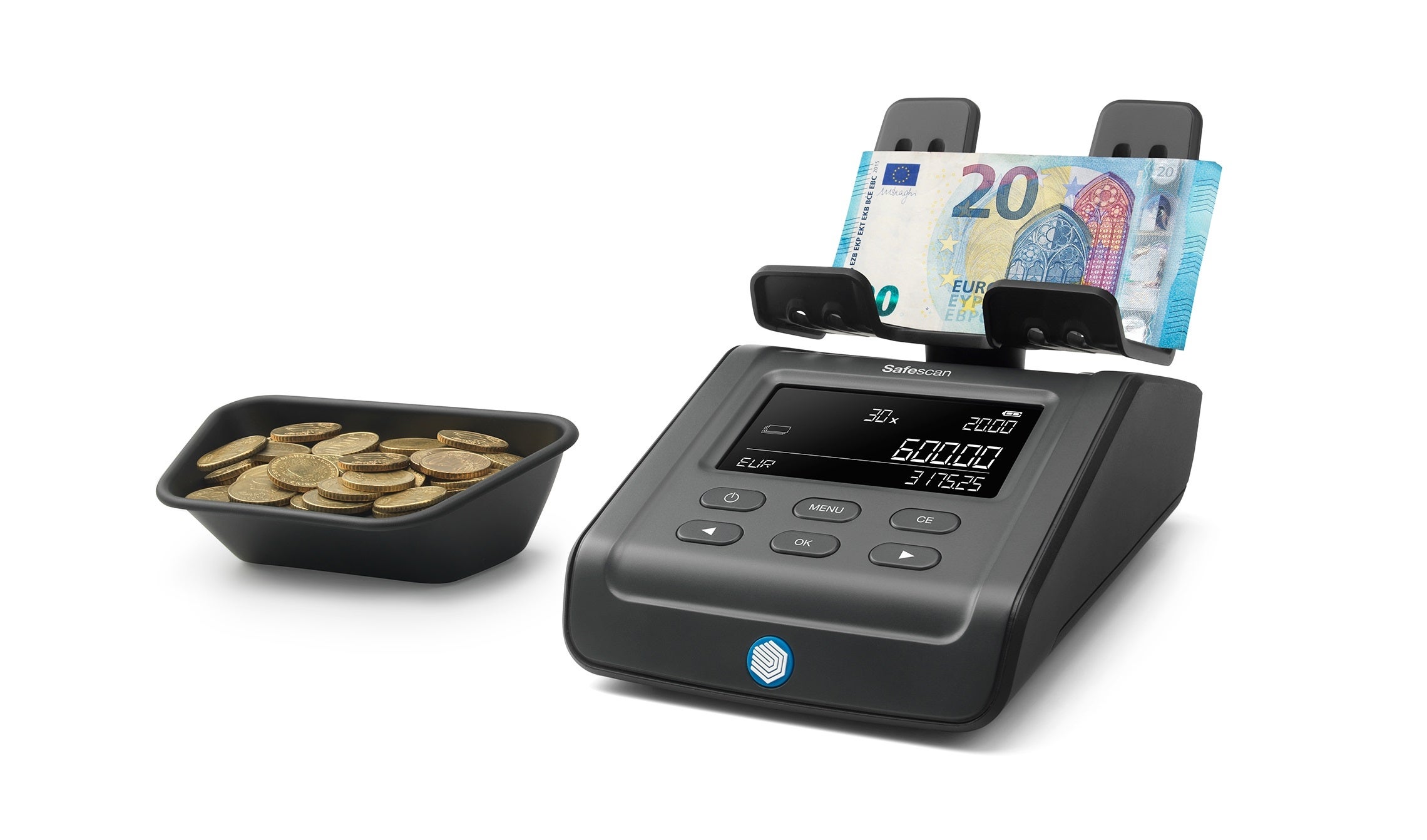 Der Safescan 6165 ist die Komplettlösung, die Ihnen hilft, Zeit und Geld zu sparen. Dank seines adaptiven Zählsystems kann der Safescan 6165 alle Banknoten mit höchster Präzision wiegen und verarbeiten. Er kann sogar verschiedene Banknotenversionen desselben Nennwerts zusammenzählen. Sie müssen nicht erst vorsortiert werden. Neben losen Münzen und Banknoten kann der Safescan 6165 auch Münzrollen und Münzbeutel sowie gebündelte Banknoten zählen. Er erkennt automatisch alle gängigen Münzrollen (einschließlich des Safescan CR-102 EUR) und kann alle Stückelungen gleichzeitig verarbeiten, was eine noch schnellere und einfachere Zählung ermöglicht.